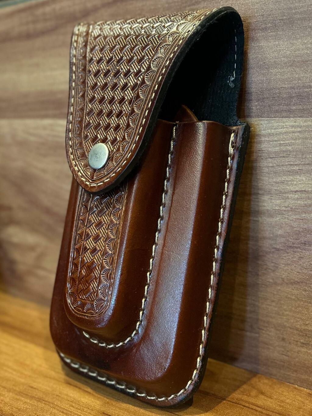 733 CTB Bainha Duo Smartphone e Canivete Forrada Castor Bordada
