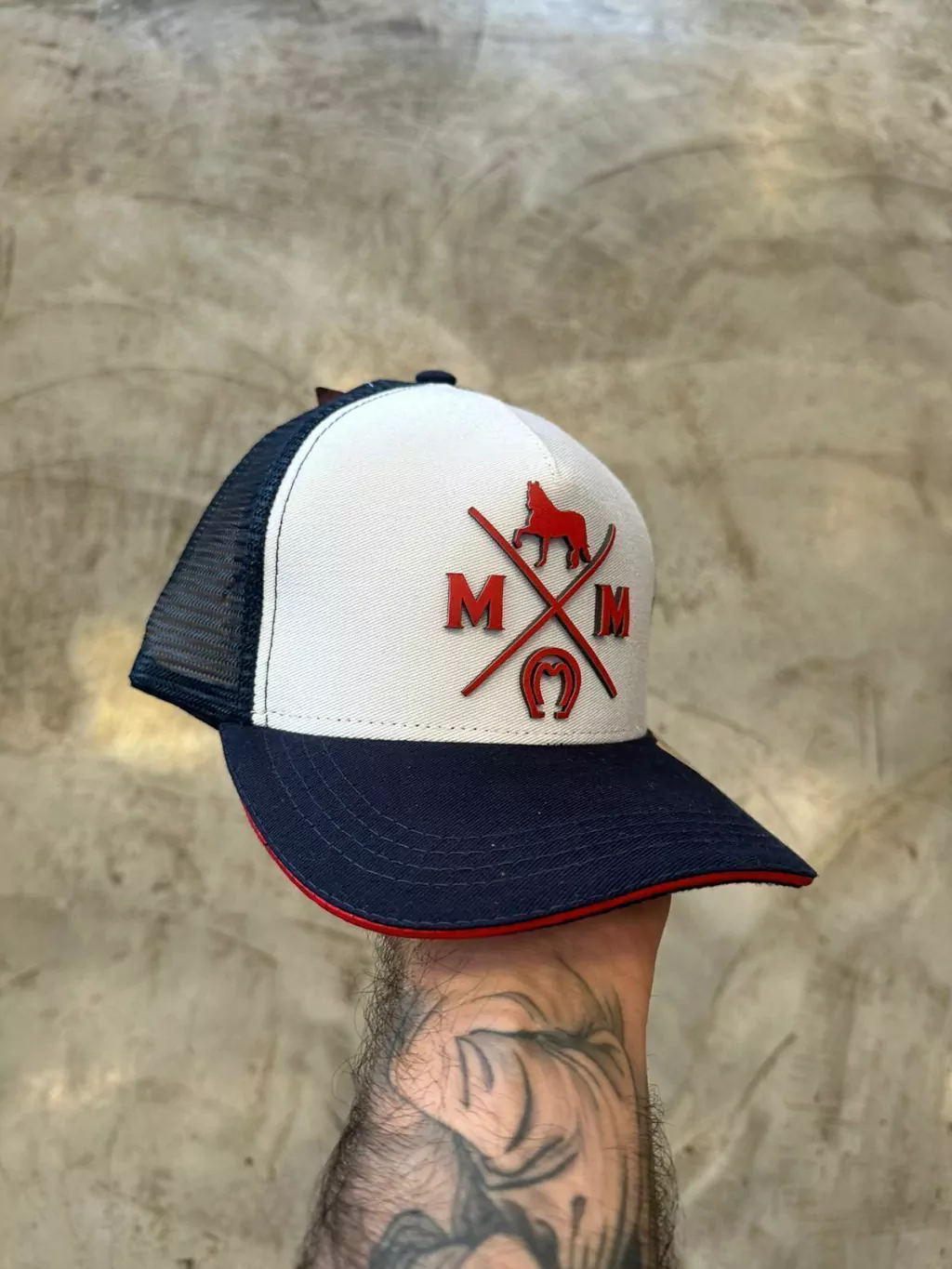 Boné Mangalarga Marchador Branco e Azul Marinho com Detalhes Vermelho