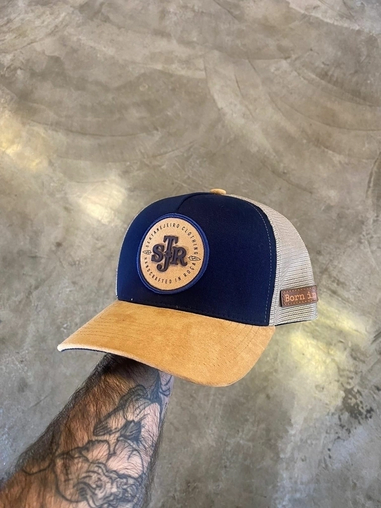 Boné Sertanejeiro Azul Marinho e Bege