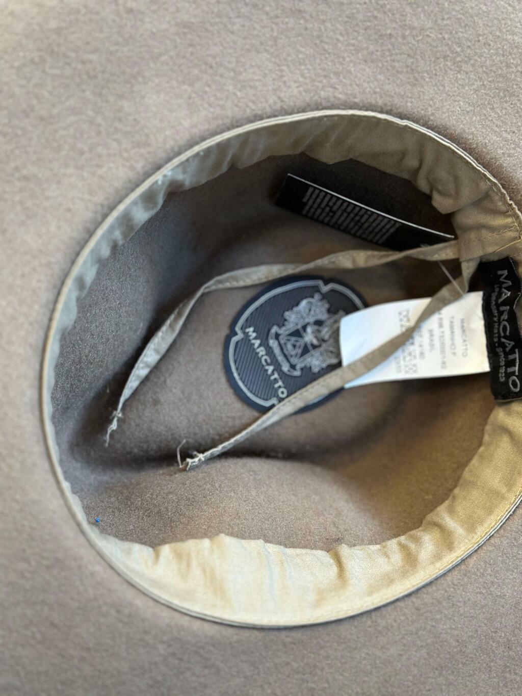 Chapéu marcatto de feltro 100% lã, na cor Caqui, estilo cata ovo.