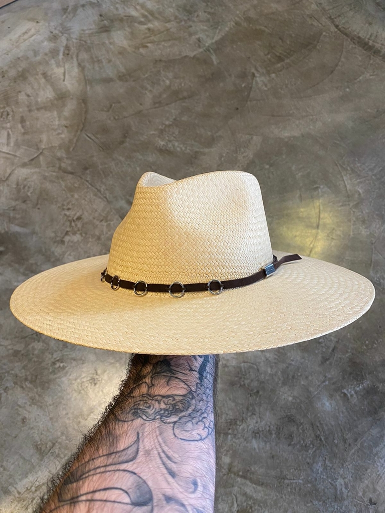 Chapéu Marcatto modelho palha feito em fibra de celulose, com bandinha em material sintético.